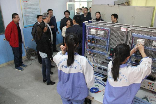 校长赵立军、办公室主任杜湖亭、财务科科长毛岳军、总务科副科长刘洪光、实训中心副主任王志平陪同下,商主任一行参观了教学班级、机械加工车间、电工实训室、计算机实训室、财会实训室、舞蹈房、琴房、学生宿舍、餐厅、汽修实训基地等场所,详细了解我校近两年来的发展历程与教科研情况。调研过程中商主任重点考察了我校实训中心,仔细了解了我校人才培养、校企合作及实训场所建设等情况。