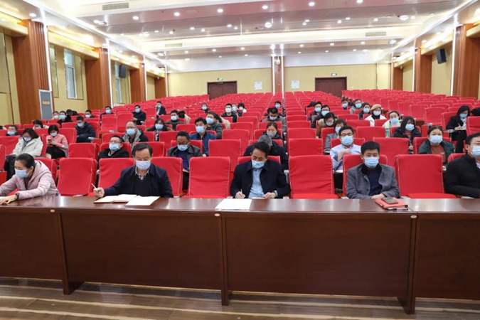学校党委书记、校长王树林, 党委副书记、副校长孟维赞,党委委员、副校长刘仲凯,党委委员、纪委书记、市纪委监委监察专员宋志刚在主席台就坐,中层以上干部、高级讲师以上职称人员参加,孟维赞主持。