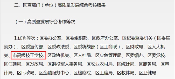喜报!滨州市高级技工学校荣获2021年度滨城区高质量发展综合考核优秀等次
