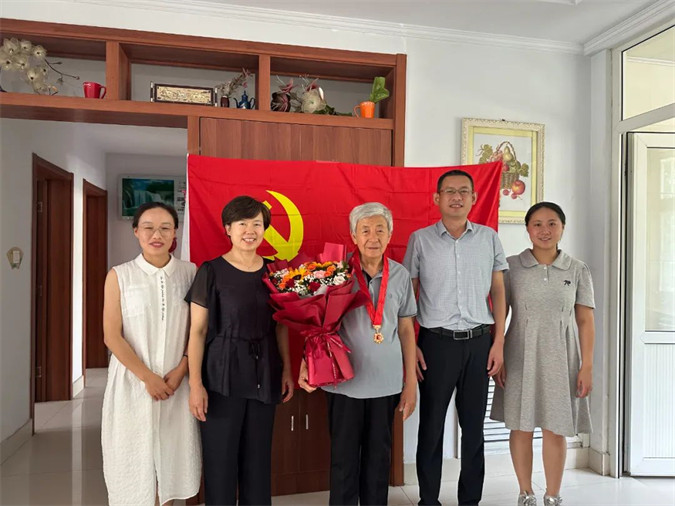 6月30 日上午,机关党委副书记张瑞、老干部党支部书记于俊兰一行,来到党龄满50周年的退休老党员石清泽家中走访慰问,并为其颁发“光荣在党50年”纪念章。