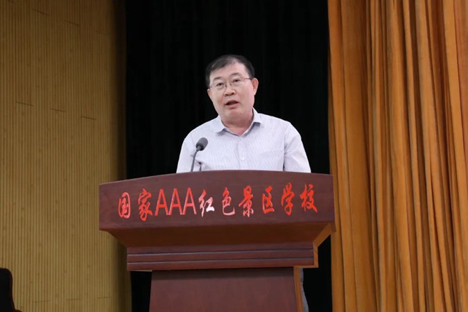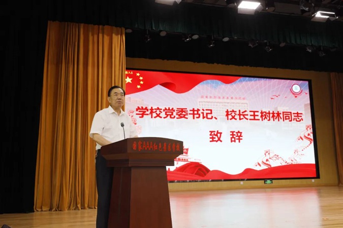 王树林在致辞中指出,学校用“一二三四五”的办学思路,打造了一所特色鲜明的红色校园品牌学校,希望通过先进楷模的先进事迹,帮助学生树立目标,锻造技艺,弘扬传统文化,成为对社会有用的栋梁之才。