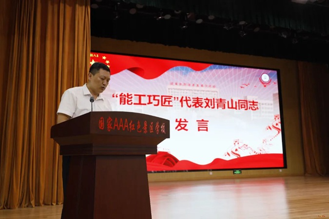“劳动模范”代表王新伟、“能工巧匠”代表刘青山、“非遗传承人”代表刘炳国分别发言,表示将会不遗余力的将自己不服输的工作态度和战胜困难的韧劲传递给学生,积极促进校企合作,为职业教育的发展贡献自己的力量。