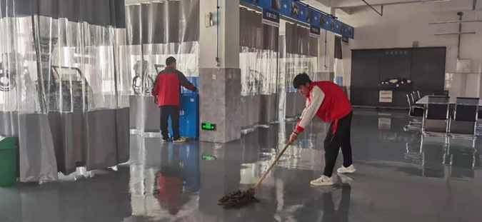汽车工程教学中心团总支志愿服务队清理实训中心卫生