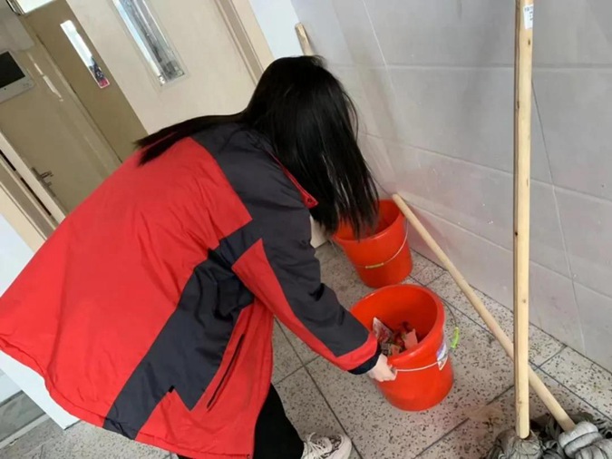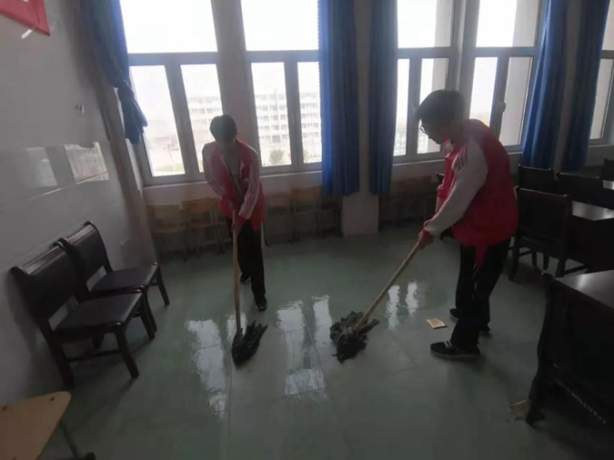 学前教育教学中心团总支志愿服务队清理各教室卫生