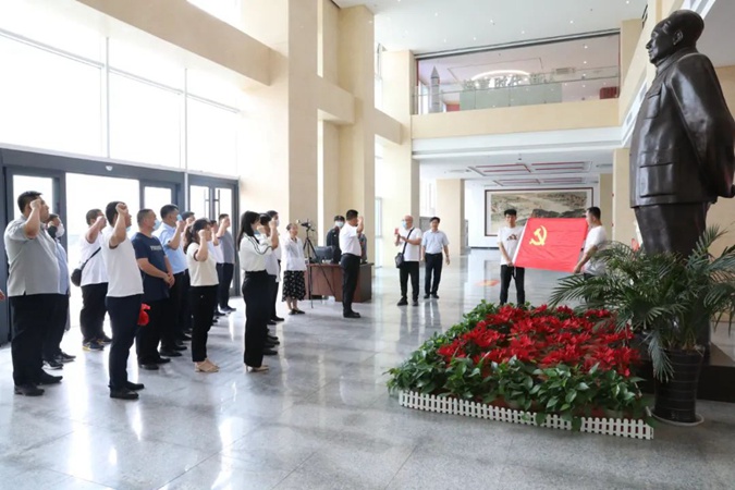 首先,全体人员在东方红广场毛主席雕像前重温入党誓词。随后,参观了东方红广场、嘉兴楼实训基地、韶山楼和井冈山楼红色文化、经红色连廊到北平楼参观了伟人塑像厅、红色藏品展厅、百年党史馆、国防教育展馆等。