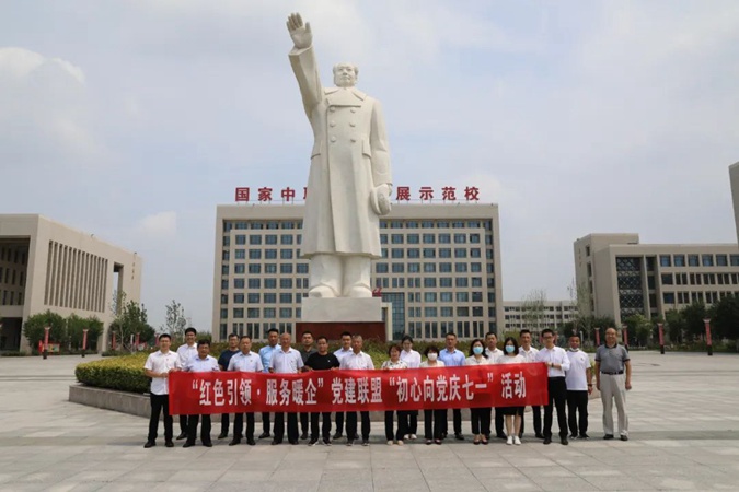 滨州市民营经济发展服务中心联合市重点行业协会、企业40余人到滨州市高级技工学校到滨州市高级技工学校开展“红色引领,服务暖企”党建联盟共建活动。培训基地主任竟焕森陪同。