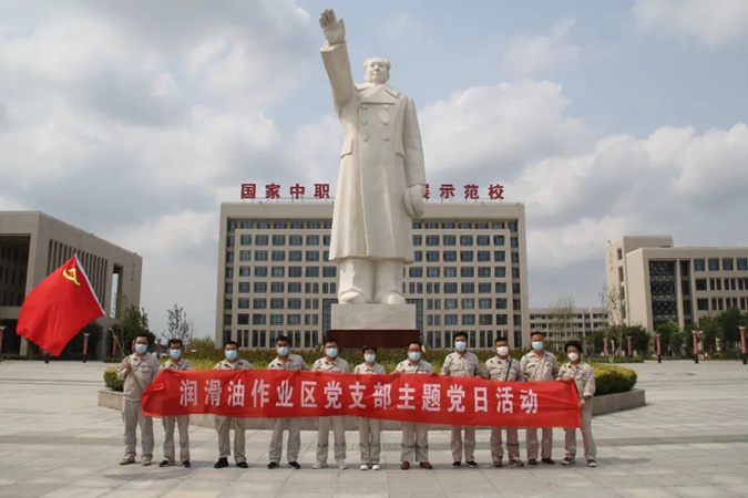 中海沥青股份有限公司润滑油作业区党支部一行12人,在党支部副书记、副主任袁玉珍带领下到滨州市高级技工学校参观学习,学校组织人事科科长杜湖亭陪同。