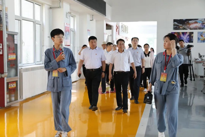 滨城区审计局党组书记、局长吕全贵一行到滨州市高级技工学校参观,党委委员、纪委书记、市纪委监委监察专员宋志刚。