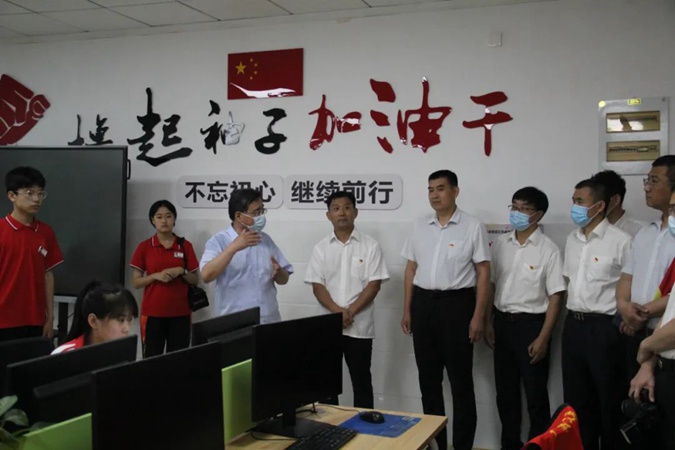 山东省青少年宫主任张富国,山东省青少年宫主任办公会成员张文明一行到滨州市高级技工学校参观,并出席在学校举行的“山东省青少年研学实践基地”揭牌仪式。共青团滨州市委书记崔志勇,副书记张旋,滨州市青少年活动中心主任张惠勇,滨州市高级技工学校党委书记、校长王树林,党委副书记、副校长孟维赞,党委委员、副校长刘仲凯,共青团滨城区委书记商岩青共同出席仪式。