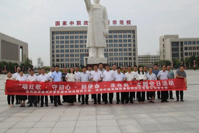 滨州经济技术开发区综合执法局党支部与滨州中海高端装备制造园区有限公司党支部到滨州市高级技工学校联合开展“唱红歌·守初心·担使命·走在前”主题党日活动。纪检监察室主任张华坤陪同。