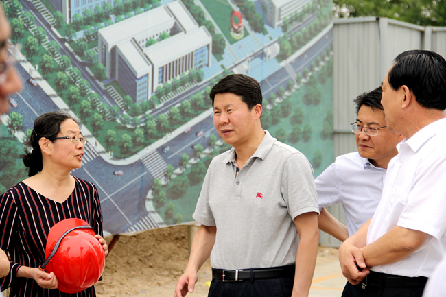 6月5日上午,滨城区委书记张宝亮,区委副书记、区长张瑞杰带领区级各大班子领导同志,滨州市工业园区主要负责人,区直有关部门、单位主要负责人,各乡镇(街道)党(工)委书记到我校新校基建工地现场观摩,现场指导科学发展工作。学校党委副书记、校长王树林,党委副书记史文莲,副校长刘冠利,副校长刘仲凯陪同观摩。