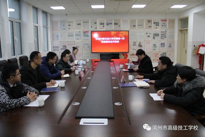 2020年1月6日下午,中国石油大学职业培训部主任孙姚同一行7人到滨州市高级技工学校参观考察,深入探讨两校合作事宜。学校党委委员、副校长刘岳陪同。