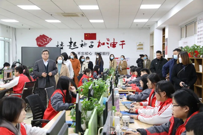 全体人员参观了东方红广场、嘉兴楼实训基地,到韶山楼、井冈山楼参观了红色文化及产教工坊、京东直播实训室,经红色连廊到“南泥湾"参观了师生劳动基地,最后到北平楼参观了廉政文化作品展、伟人塑像厅、红色藏品展厅、百年党史馆、国防教育展馆等。