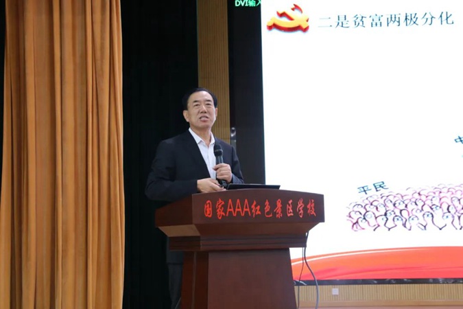 参观结束后,在北平楼报告厅,王树林为全体人员讲党课《让红色精神永放光芒》。