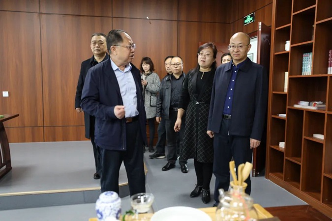 在学生讲解员的引导下,彭维锋一行参观了东方红广场、嘉兴楼实训中心,经韶山楼、红色连廊,到井冈山楼参观了“产教工坊”、京东直播实训室,VR教室,经“南泥湾”师生劳动基地,到北平楼参观了职工书画摄影展、伟人塑像厅、百年党史馆等红色展馆,到八楼职工之家参观了“e盏茶事”和职工书画室。