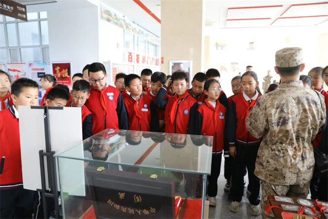 下午,大家集中观看了经典红色电影。荧幕上革命先烈的英勇身影、感人至深的战斗场景,深深打动了每一位观众,不少孩子热泪盈眶。随后,大家一同走进学校红色展馆。在讲解员的讲解引导下,孩子们驻足端详珍贵的老照片,认真聆听革命先辈抛头颅、洒热血的奋斗故事,仿佛穿越时空重回烽火岁月。一个个感人至深的事迹、一件件镌刻记忆的实物,让红色种子在孩子们心中悄然扎根。