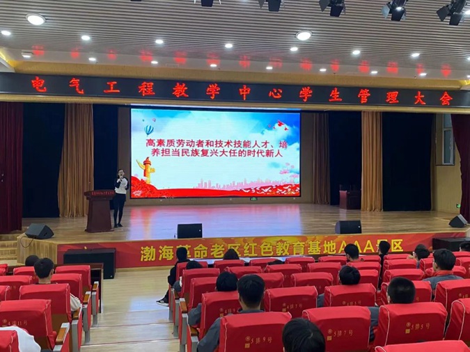 为积极培育和践行社会主义核心价值观,深入贯彻落实党的二十大精神及习近平新时代中国特色社会主义思想,提升学生思想政治水平,11月7日,滨州市高级技工学校电气工程教学中心党支部在报告厅举行了践行社会主义核心价值观主题报告会,教学中心全体党员和学生参加。