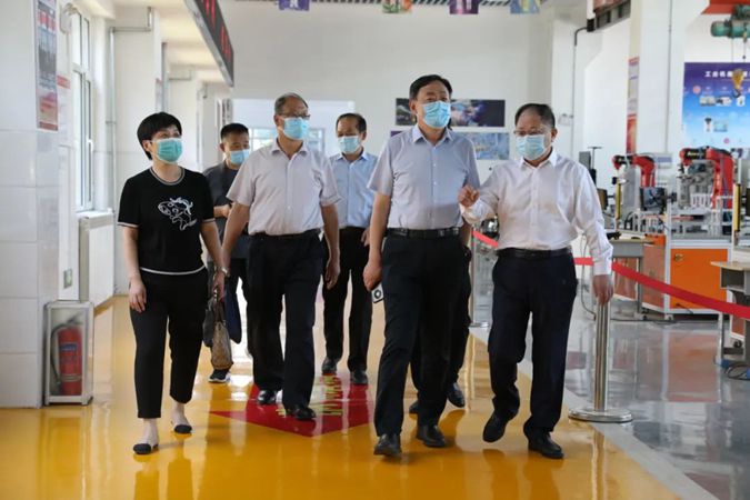 5月20日,滨州北海经济开发区党工委委员、管委会副主任、党政办主任袁昊,党政办主持日常工作的副主任、教育办公室主任鲍红霞,教育办公室副科级干部李云鹏,北海经济开发区第一实验学校初中部校长袁立新、副校长付华旺一行到滨州市高级技工学校参观交流。党委书记、校长王树林,党委副书记、副校长孟维赞,红色思政教学中心主任毛岳军陪同。