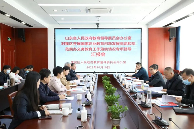 在北平楼八楼会议室,首先就滨城区开展国家职业教育创新发展高地和规范民办义务教育工作落实情况进行督导座谈。袁俊英做作专题汇报,她指出,滨城区是中心城区,承担着市区两级教育重任,在省市党委政府和教育督导部门的坚强领导和精准指导下,牢固树立教育优先的发展策略,科学布局,统筹谋划,勠力攻坚,教育发展持续向上向好。