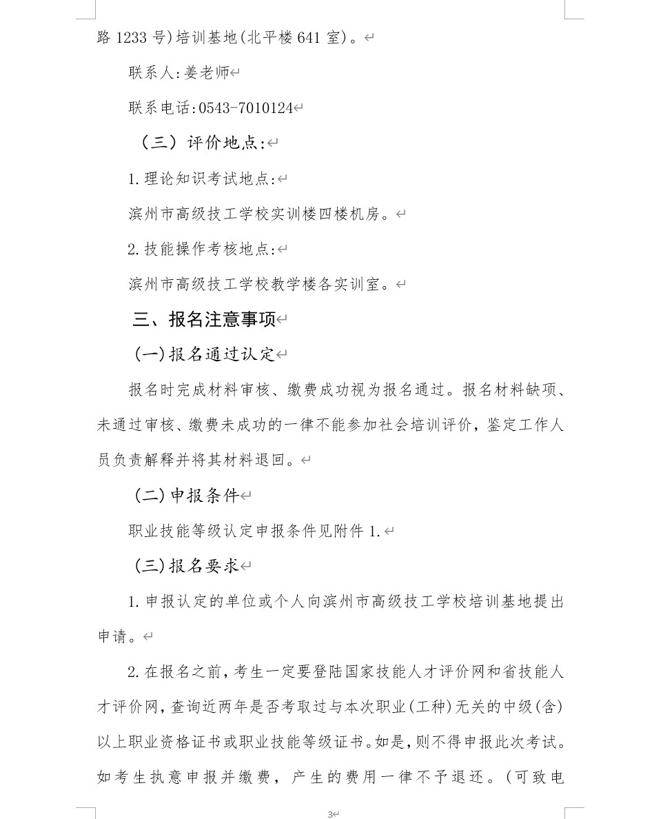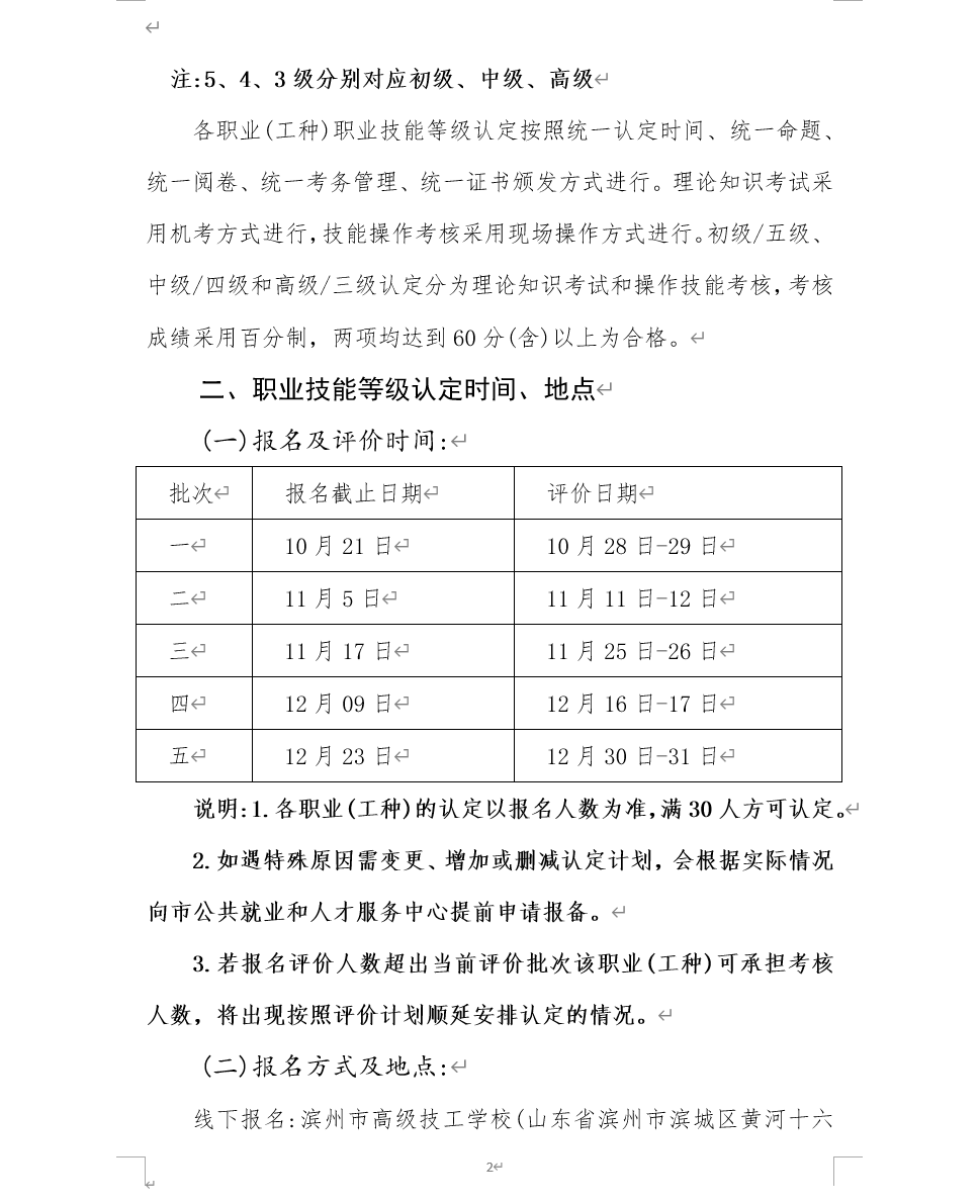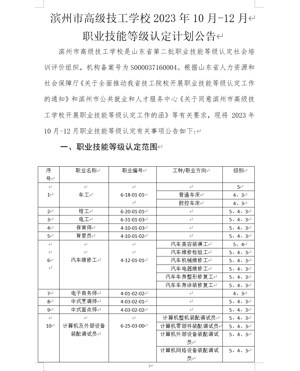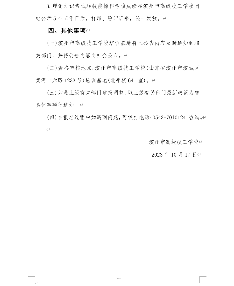 滨州市高级技工学校2023年10月-12月职业技能等级认定公告