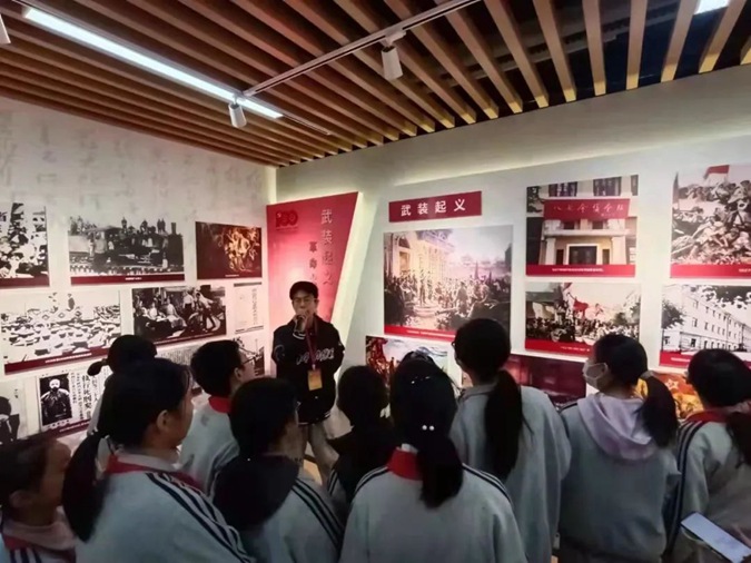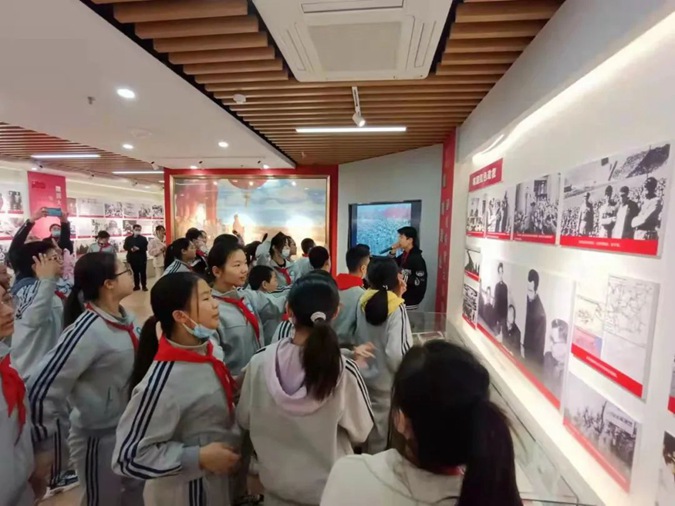 同学们参观了党史教育、国防教育等展馆,在伟人塑像厅雷锋塑像前聆听雷锋故事,与雷锋塑像合影。并参加了红色趣味运动会,品尝了忆苦思甜红军饭。