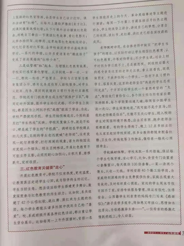 5月26日,省教育厅以工作简报形式将学校红色办学经验