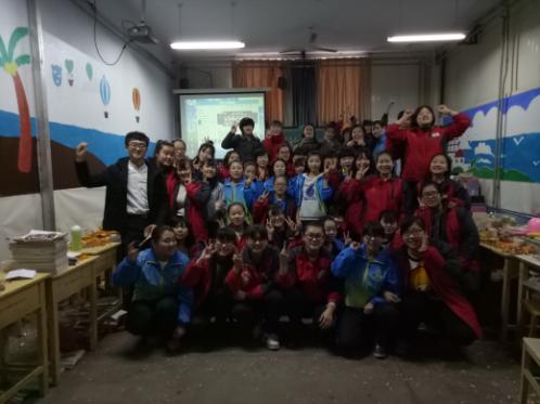 学生们,争先恐后与教师合影。