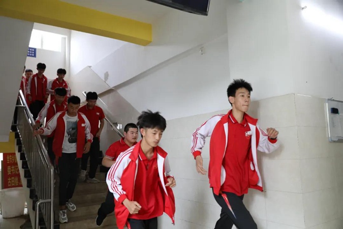 下午2点30分,警笛响起,全体人员迅速进入各自岗位及时组织疏散。在老师的指挥下,所有学生按照指定的安全出口和疏散路线,迅速有序地撤离宿舍楼,疏散到指定地点,教官及老师立即清点人数上报给负责人。