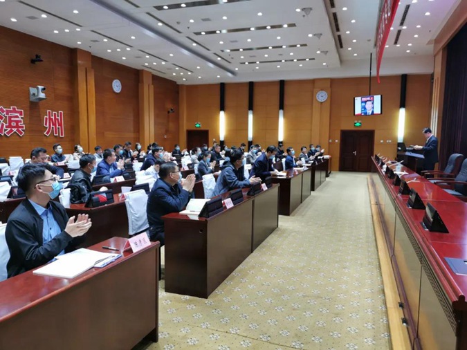 4月13日下午,滨州市高级技工学校党委书记、校长王树林应邀到市政大厦第二会议室为市委办公室党史学习教育专题学习班做党史教育报告,市委副秘书长李雪海主持,市委办公室全体工作人员参会。