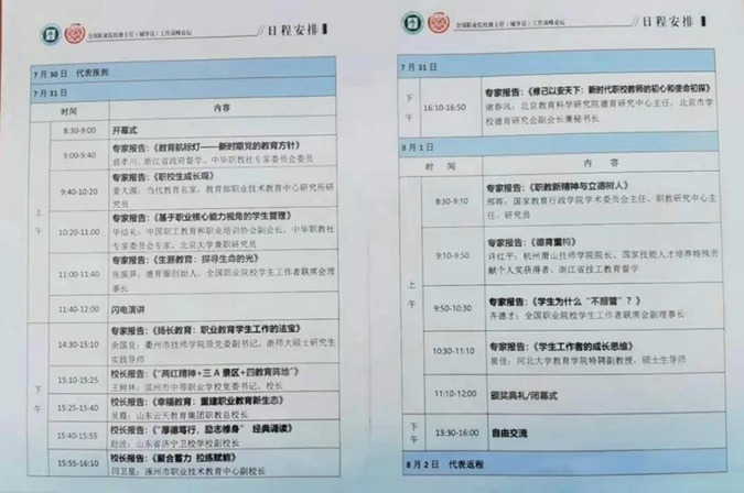 全国职业院校班主任工作高峰论坛于7月31日—8月1日在国家教育行政学院举行。参加此次高峰论坛的有当代教育名家,教育部职业教育技术教育中心研究所研究员姜大源;德育圈创始人,全国职业院校学生工作者联席会理事长张振笋;中国职工教育和职业培训协会副会长,中华职教社专家委员会专家毕结礼;全国职业院校学生工作者联席会副理事长齐德才;国家教育行政院学术委员会主任、职教研究中心主任邢辉等知名国内职业教育专家。会上,来自北京、江苏等地的全国职教专家作报告,包括王树林在内的3个全国德育名校校长作典型发言。