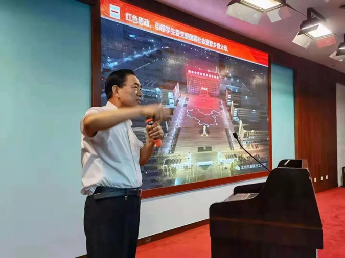 王树林以《两红精神 三A景区 四教育阵地》为题,用声情并茂的语言阐述了滨州市中等职业学校的红色办学经验及成果、三A景区的打造历程、四教育阵地的建设成果,不时获得与会人员热烈的掌声。最后王校长真诚的邀请在场的一百多所兄弟院校职教同仁参加8月底在我校举办的山东省职业院校红色教育高质量发展经验交流会暨全国职业院校红色教育中心成立大会。