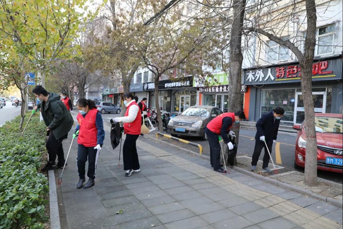志愿者们拿着扫帚、垃圾夹、垃圾袋等工具,分赴黄河三路渤海六路与渤海七路之间的各个区域,认真仔细的对人行道上、绿化带内的落叶、杂草及烟头等进行卫生清理,并对乱停乱放车辆予以规整,最后将清扫后的垃圾与环卫工人一起集中装车清运,确保每个角落环境卫生都达标。经过一上午的辛勤劳动,责任区域内的环境有了明显改善,志愿者们为营造干净卫生、整洁有序的生活环境贡献了技校力量。