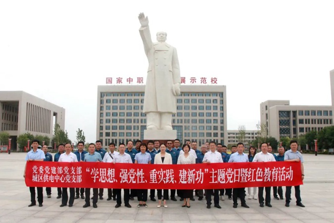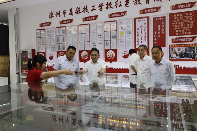 6月25日,国网滨州供电公司党委书记杜颖一行30人到滨州市高级技工学校参观,开展“学思想、强党性、重实践、建新功”主题党日暨红色教育活动。学校党委委员、纪委书记、市纪委监委监察专员宋志刚,组织人事科科长杜湖亭,培训基地主任竟焕森,机关党委副书记张瑞陪同。