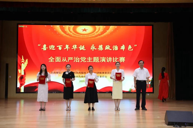 为深入推进以党史为重点的“四史”学习教育,充分展现全面从严治党取得的新成效,6月25日下午,滨州市高级技工学校举行了“喜迎百年华诞 永葆政治本色”全面从严治党主题演讲比赛。