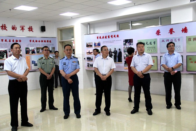 7月5日下午,以空军济南基地政治工作部副主任郝立伟为组长的省双拥模范城考评组一行30余人来我校就“全国双拥模范城”创建工作开展考评验收。滨州市人民政府副市长、市公安局党委书记、局长赵永生,滨州市退役军人事务局局长、滨州市双拥工作领导小组办公室主任巴明华,滨城区委副书记张博,滨城区委常委、滨城区人武部部长郭学辉,滨城区副区长、滨城公安分局局长傅成松,学校党委副书记、校长王树林,党委委员、副校长刘岳,党委委员、纪委书记宋志刚及学校部分科室负责人陪同检查。