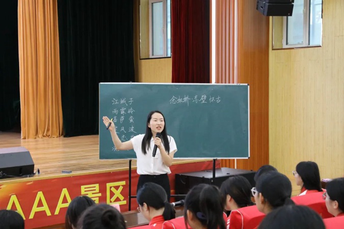 语文教师郑娜娜选取《念奴娇•赤壁怀古》,以其深厚的知识功底,优秀的课堂把控能力,为学生带来一节感染力极强的语文课。课上,郑老师利用视频、音频等创设情景,引导学生进入状态,以小组讨论等形式,提高学生的课堂参与度,课堂十分活跃,学生对于知识也有了很好的掌握,课堂效果极佳。
