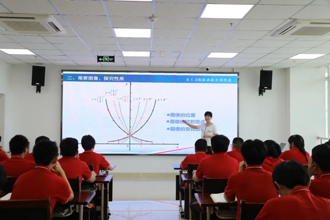 数学教师李艳青讲授《指数函数》,她以神州十六号载人飞船发射和一张神奇的纸对折实验引入课题,激发了同学们的学习兴趣。在讲课过程中,李老师充分利用多媒体技术手段,设问激疑,引发学生创造性思维,其淬炼的语言和富有感染力的个人魅力,不仅吸引着每一位学生,也让听课教师受益匪浅。