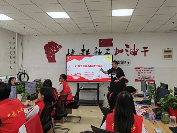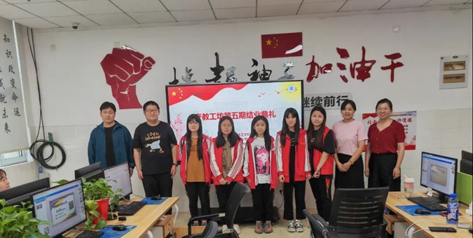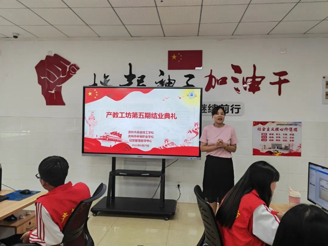6月29日下午,滨州市高级技工学校电子商务专业“产教工坊”项目第五期结业典礼在井冈山楼107实训室举行。