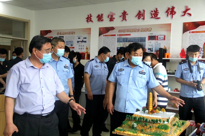 在讲解员引导下,刘希军一行参观了韶山楼红色育人展厅、红色连廊、产教工坊、3D打印实训室、南泥湾蔬菜基地及遵义楼红色文化、南昌楼红色展藏馆。