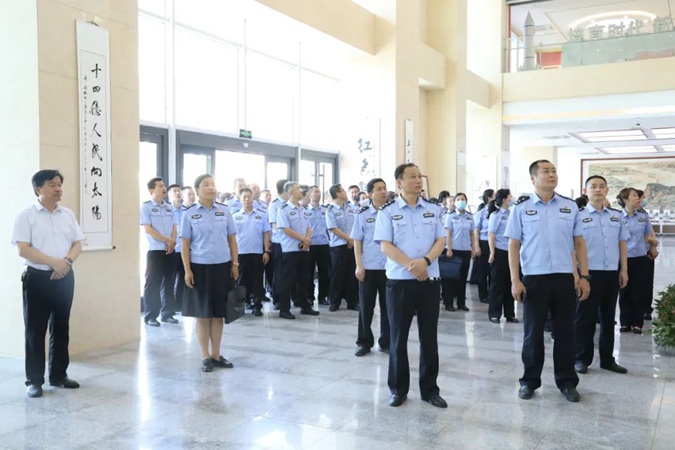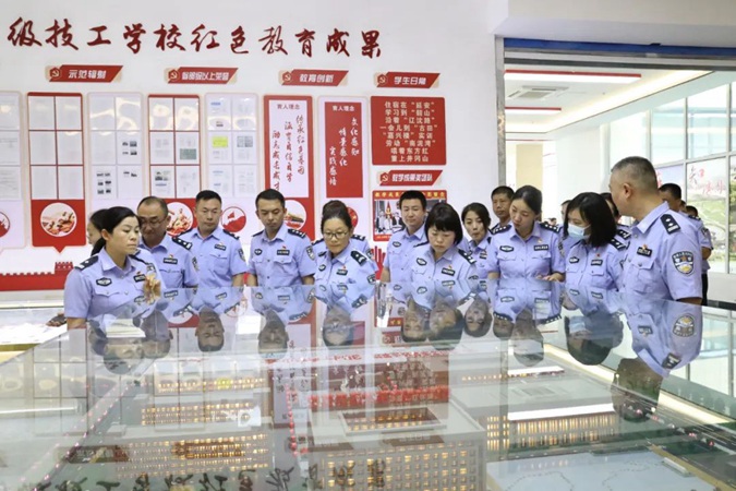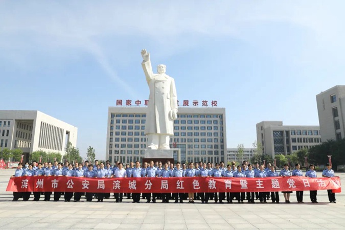 6月21日,滨州市公安局滨城分局党委副书记、政委韩玉杰带领全局中层以上干部、党员380余人分三批到滨州市高级技工学校参观,开展红色教育及主题党日活动。滨州市高级技工学校党委副书记、副校长孟维赞,计划财务科科长、工会主席任惠霞,总务科科长褚兴国,纪检监察室主任张华坤陪同。