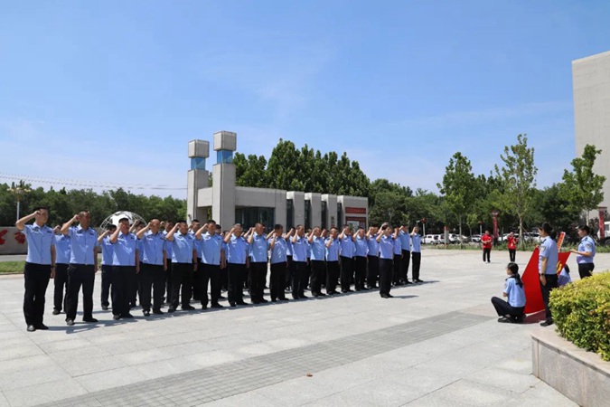 在东方红广场毛主席雕像前,全体党员重温入党誓词,用铿锵的誓言,砥砺初心使命,擦亮党员底色。