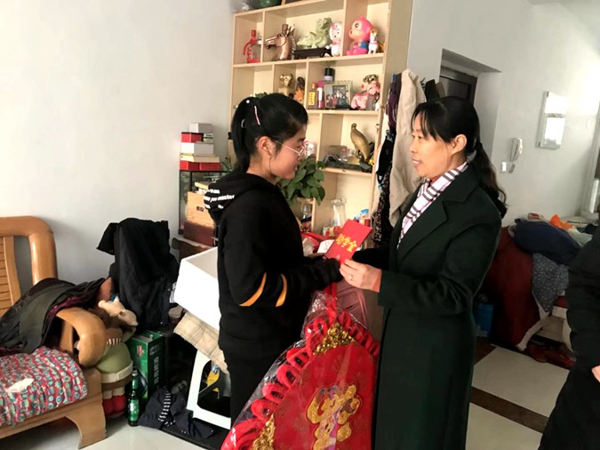 1月17号,滨州市高级技工学校工会副主席王丽静与区妇联党组成员、副主席张晓彤在社区工作人员陪同下,来到杨柳雪镇怀周学校八年级学生吕佳怡家中,为孩子送去暖暖的新年祝福,带去党、政府和社会的关心关爱。