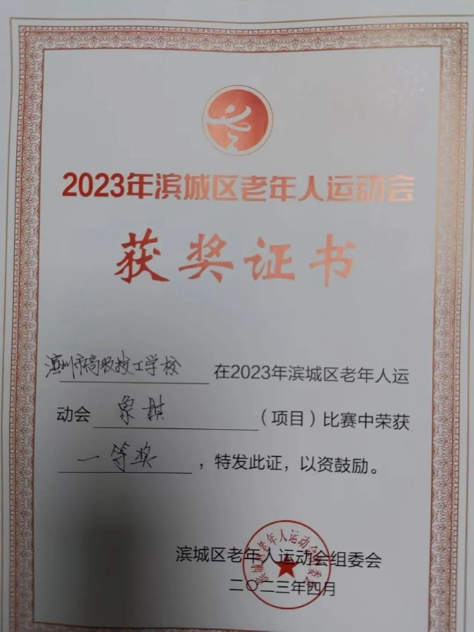 滨州市高级技工学校在全区老年运动会象棋比赛中荣获一等奖