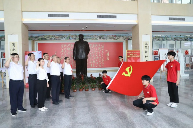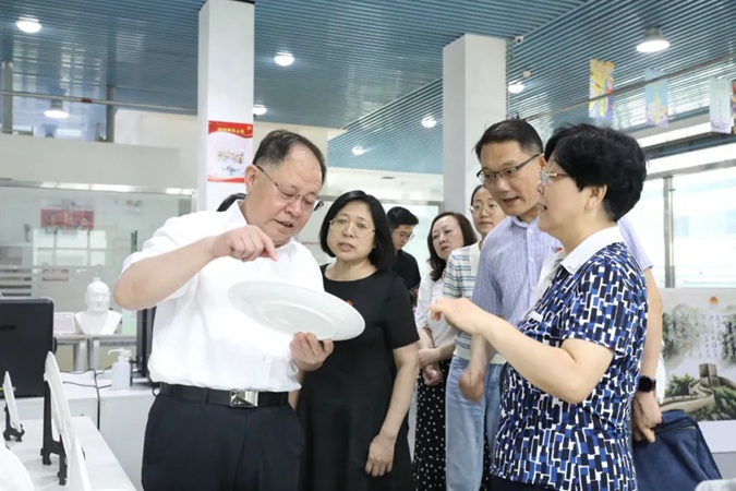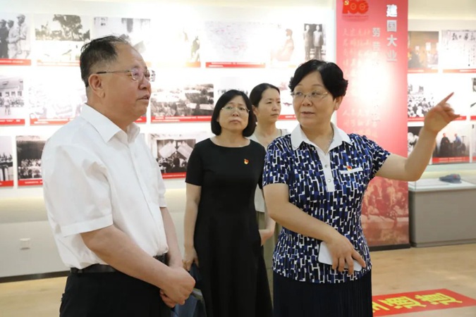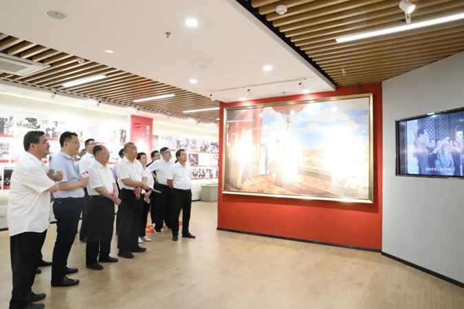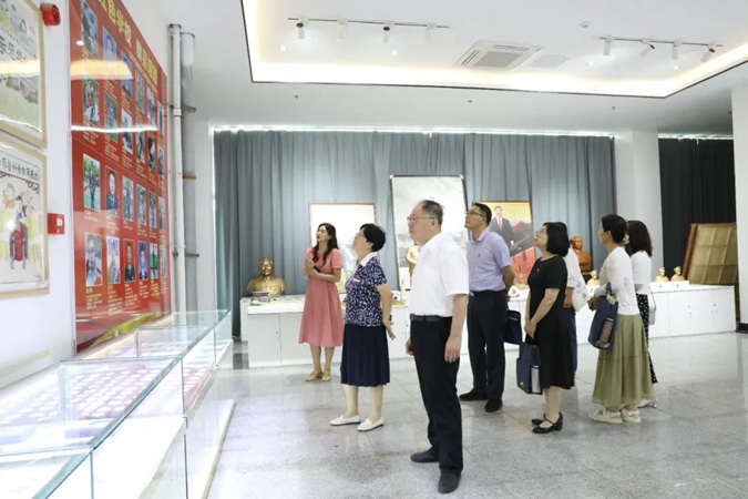 陈英芳一行参观了嘉兴楼实训基地及北平楼廉政文化作品展、伟人塑像厅、将军书画厅、红色藏品展厅、百年党史馆、国防教育展馆等红色展馆。