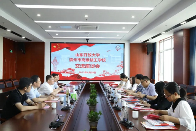 座谈会上,孟维赞介绍了滨州市高级技工学校办学情况及发展成效。陈英芳感谢学校对山东开放大学各项工作的支持,对学校以红色教育为特色实现高质量发展所取得的成绩给予高度评价,并表示通过参观学校红色教育基地接受了一次深刻的红色教育洗礼。随后,双方领导就红色育人等工作进行交流座谈。