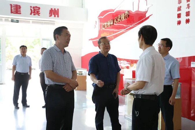 张全华一行参观了北平楼伟人塑像厅、红色藏品展厅、红色图书馆、将军书画展厅、百年党史馆、老渤海精神展厅、国防教育展厅等红色展馆,高度评价了学校在红色教育、国防教育等方面做出的贡献。