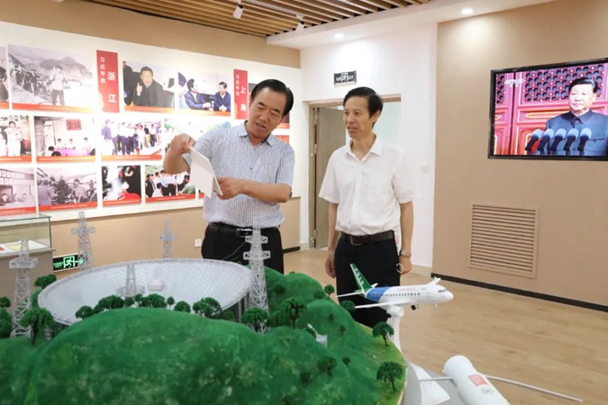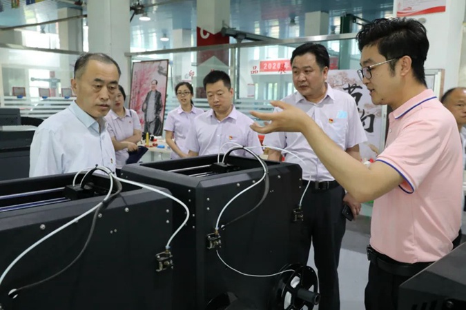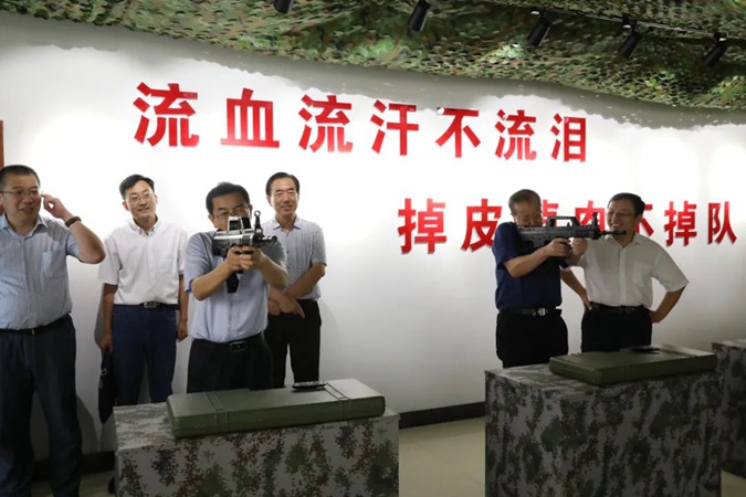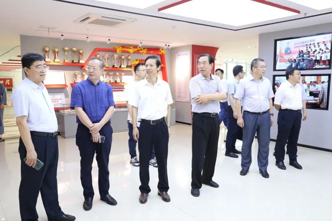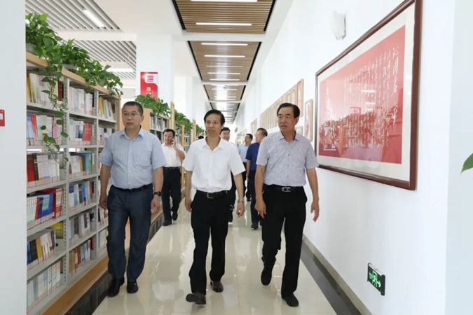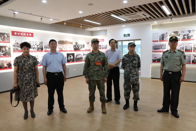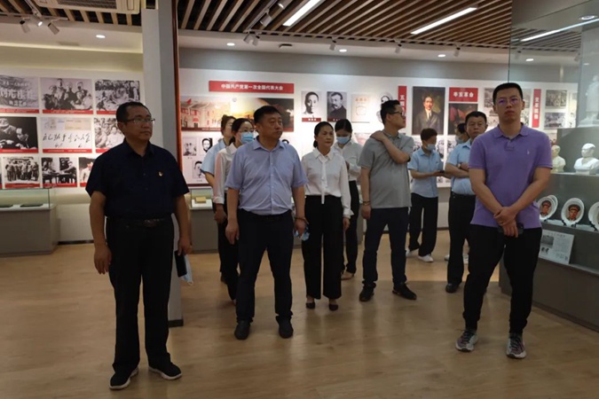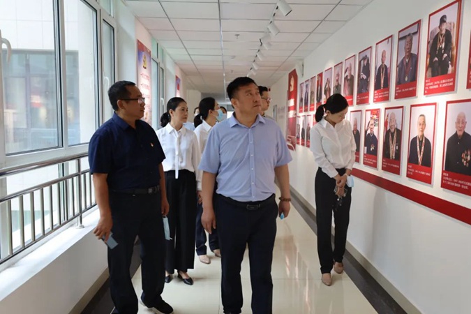 徐文谋一行先后到嘉兴楼实训基地、东方红广场、韶山楼智能化教室、井冈山楼产教工坊、北平楼伟人藏品展厅、将军书画展厅、红色图书馆、百年党史馆、渤海革命展厅、国防展厅等参观学习。