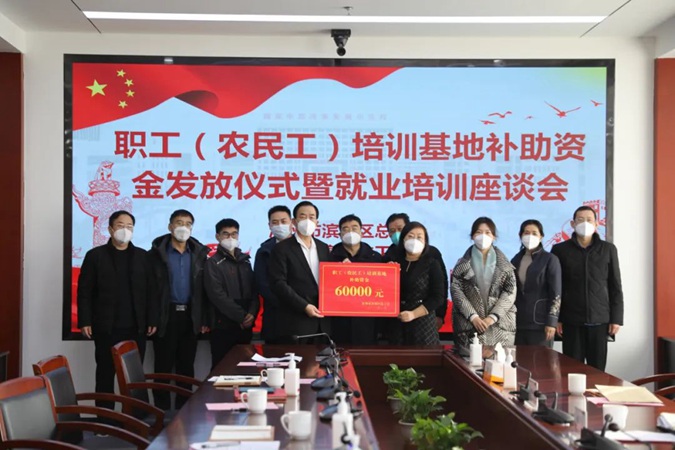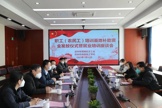 2023年1月12日,滨城区总工会职工(农民工)培训基地补助资金发放仪式暨就业培训座谈会在滨州市高级技工学校八楼会议室召开。