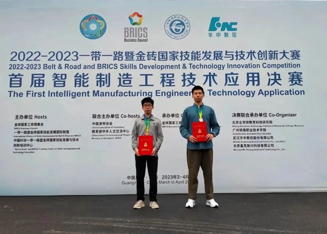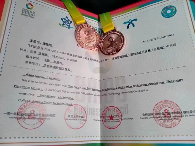 近日,2022—2023一带一路暨金砖国家技能发展与技术创新大赛—首届智能制造工程技术应用决赛在广州铁路职业技术学院举行,滨州市高级技工学校2020级机械3班(刘伯承班)王星宇、谭佳旭团队在比赛中表现优异,荣获三等奖,获得铜牌。