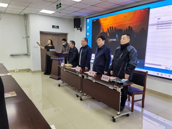 在滨州市高级技工学校北平楼三楼报告厅举行欢迎仪式,崔利军主持。首先,全体人员唱国歌,韩芹芹老师指挥。